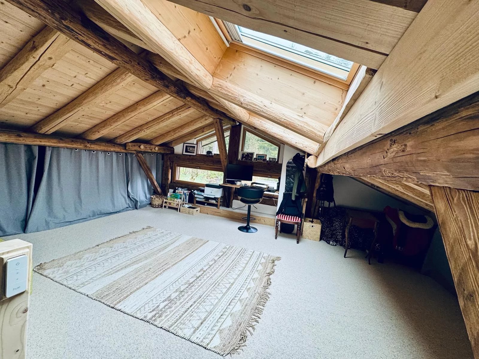En mezzanine, une vaste pièce peut faire office de chambre supplémentaire, bureau ou espace de jeux.
